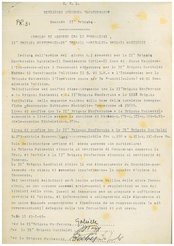 Documenti dell’Archivio della VII Divisione Autonoma Monferrato