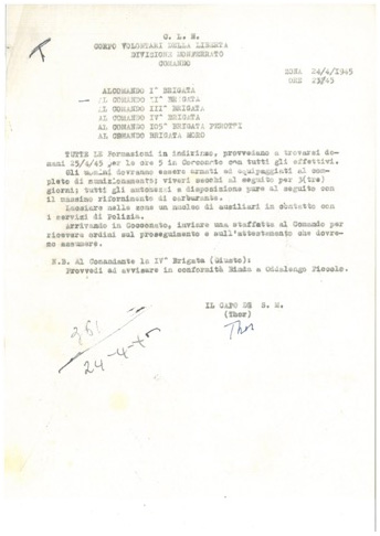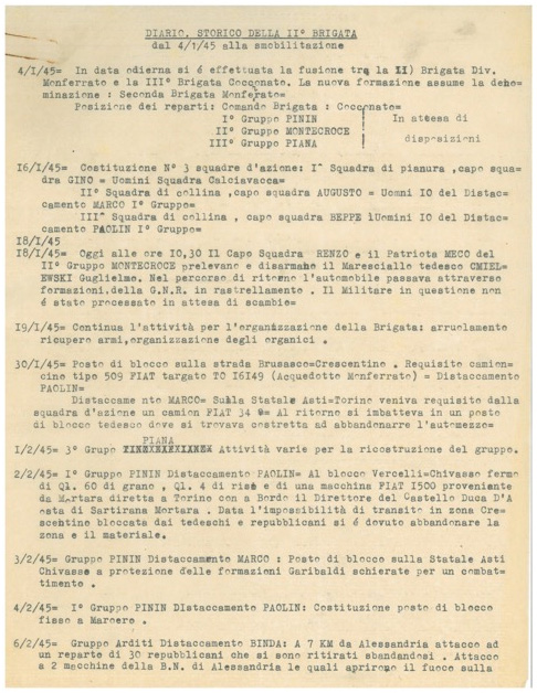 Il 24 Aprile il Comando della “Monferrato” ordina a tutti i reparti della divisione (ormai articolata in 4 brigate e dotata di armamenti piuttosto consistenti) di concentrarsi a Cocconato con tutti i mezzi di trasporto e con viveri per tre giorni.